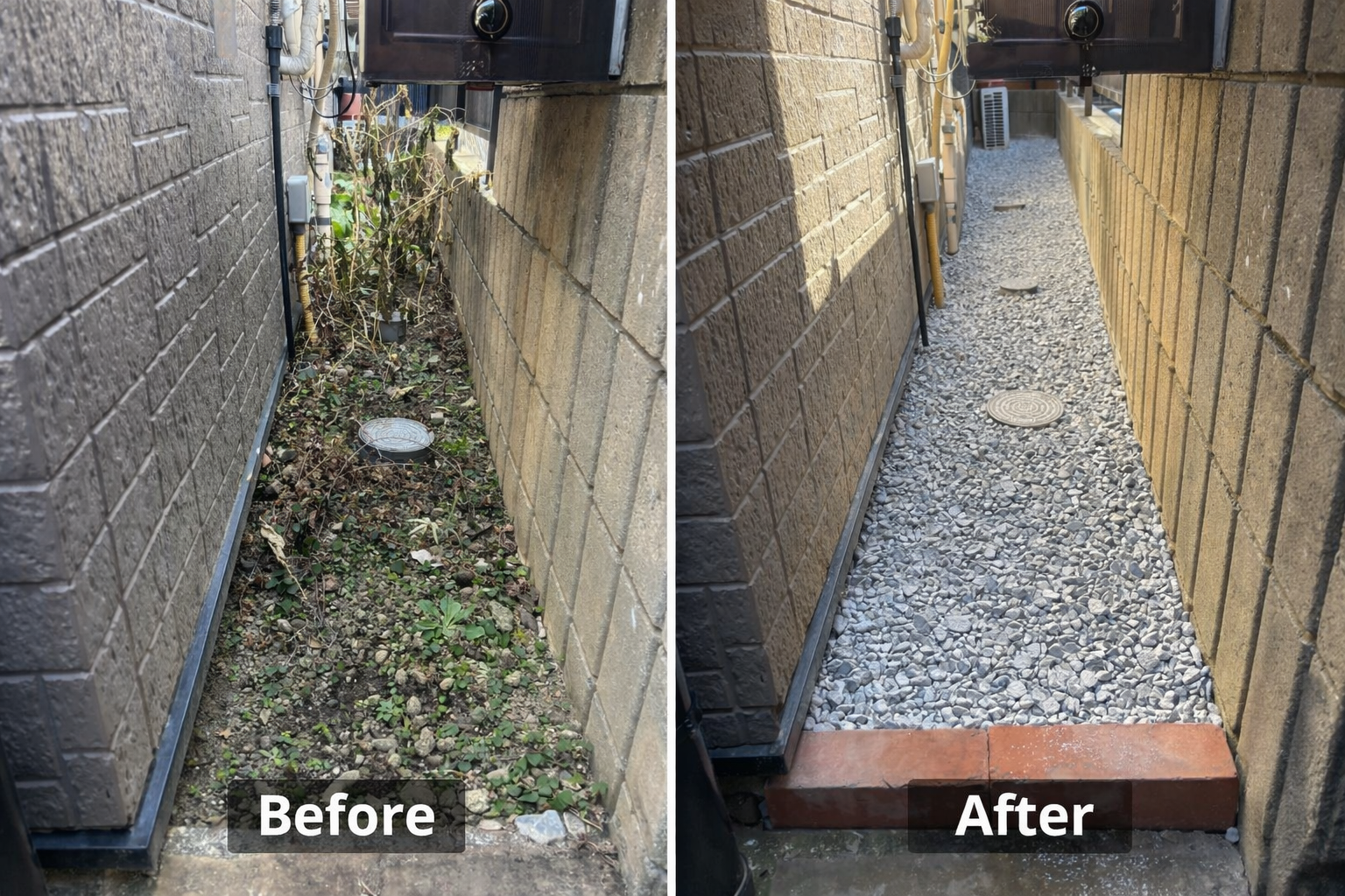 防草施工後の砂利敷き
